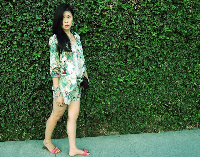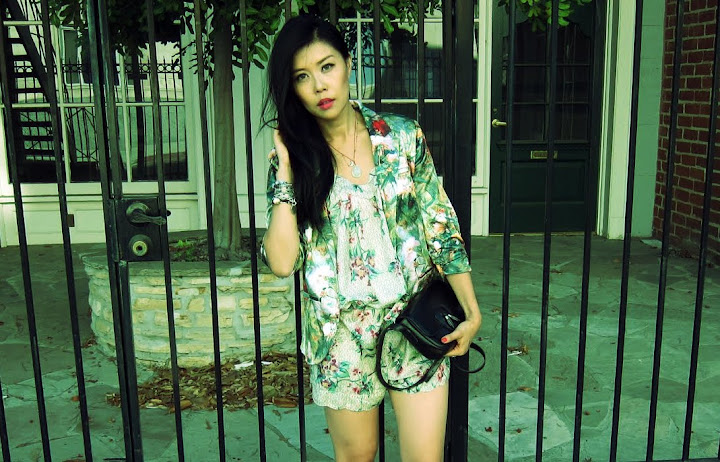 No better pairing exudes feminine summer dressing like major floral on floral action. I picked two prints with similar color tones to avoid creating an outfit caught in a death match between competing floral patterns. The loose, sporty silhouette of the Karen Zambos romper combined with the structured Sunny Girl blazer strategically deflect a few ounces of femininity from the floral prints. After all, I want to look like a lady, and not like the "Ladies Who Lunch" Sunday garden party just threw up all over me.