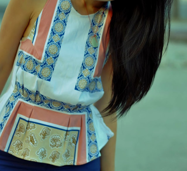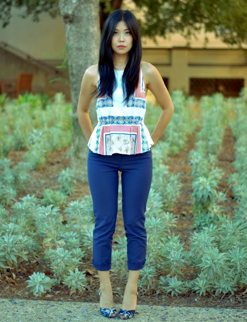 I'm lucky that my daytime attire contains very little constraints. But sometimes I do have to look the part of a legal eagle, although I never sacrifice my personal style to look the part. That's why this Maurie & Eve  peplum tank top is absolutely perfect. The peplum's subtle overskirt and gathered pleats is a welcoming departure from the monotonous conformity of summer's most popular trend.  The Greek inspired pattern is interesting but not flamboyant and pairs well with the tank's silhouette. The sheer back may be an issue but it's one that can be easily resolved by wearing a sheer nude tank underneath the tank or a cropped cardigan over it. Case closed.